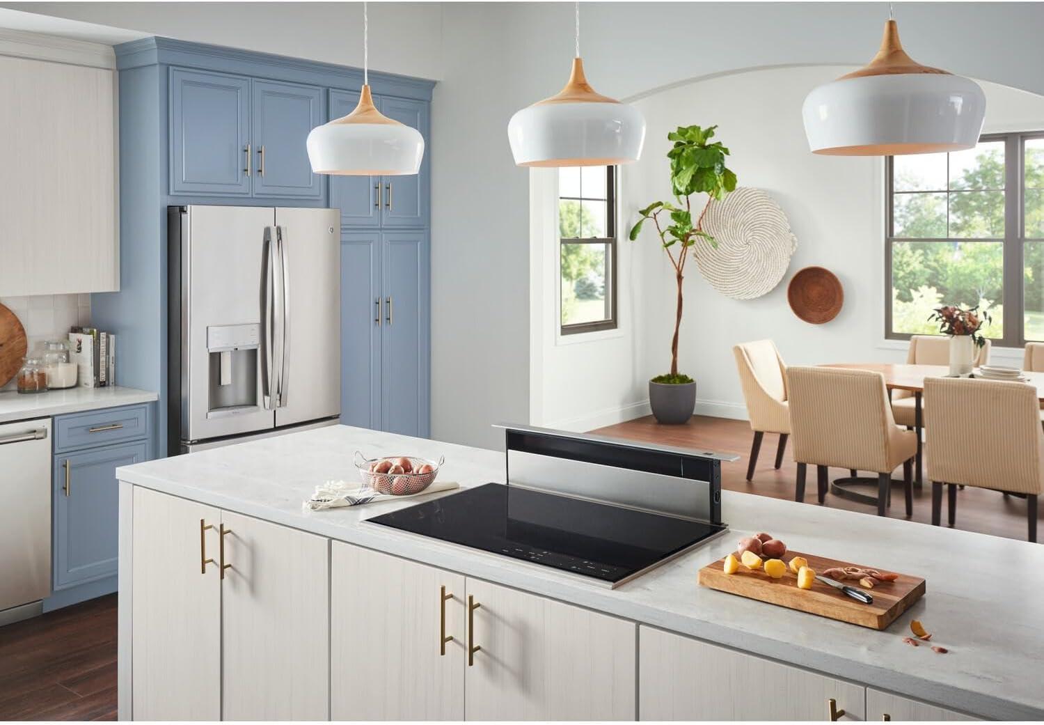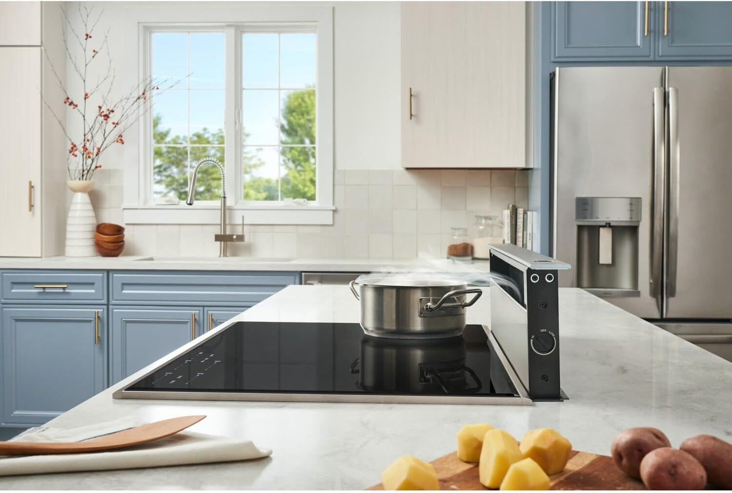 Upgrade your kitchen with the Broan Telescopic Downdraft Stainless Steel Range Hood. This retractable downdraft hood is ideal for use with island and peninsula countertops. This innovative downdraft system is compatible with virtually all self-contained cooktops. Designed to fit rectangular ductwork for simple installation, this downdraft also offers an adjustable variable fan speed controlled by a reliable rotary control, ensuring ease of use. Included are 2 washable aluminum filters for easy maintenance and cleaning. This range hood downdraft is backed by a 1 year limited warranty and measures 30″ L x 7″ D x 29.5″ H.
