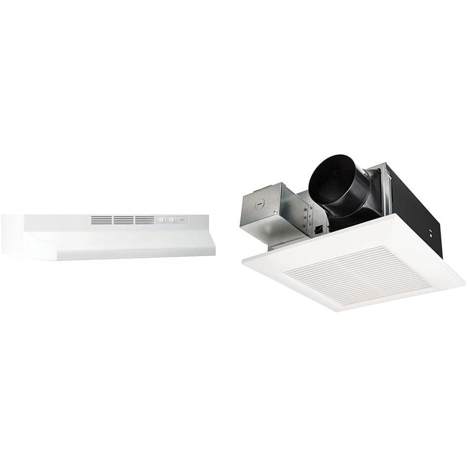 Product 1: HIGH-QUALITY DUCTLESS RANGE HOOD INSERT: White hood insert improves ventilation and lighting over your stove with the non-ducted filtration system that effectively removes smoke and odors
