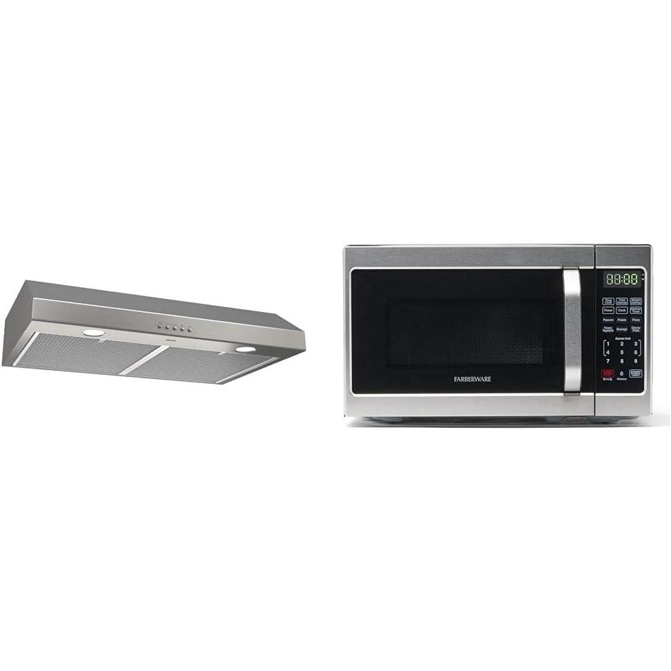 Product 1: 30-INCH UNDER-CABINET RANGE HOOD INSERT: Fits neatly underneath cabinets to offer a complete solution to your kitchen ventilation needs by providing both an exhaust fan and overhead light