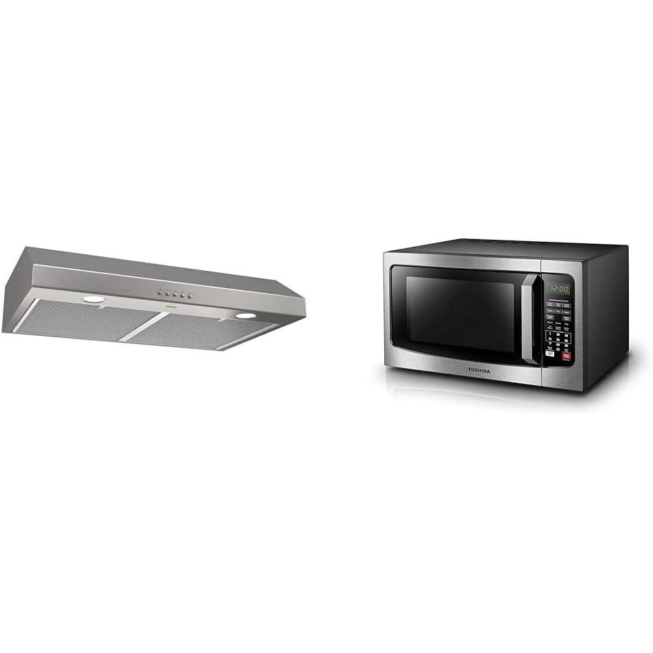 Product 1: 30-INCH UNDER-CABINET RANGE HOOD INSERT: Fits neatly underneath cabinets to offer a complete solution to your kitchen ventilation needs by providing both an exhaust fan and overhead light