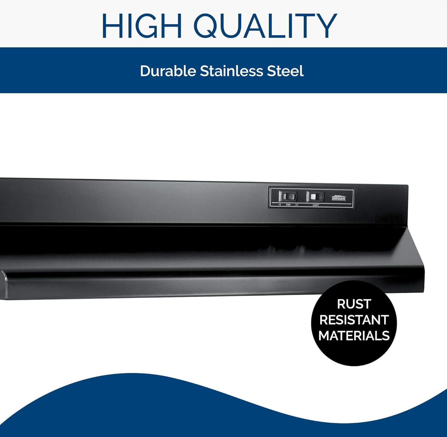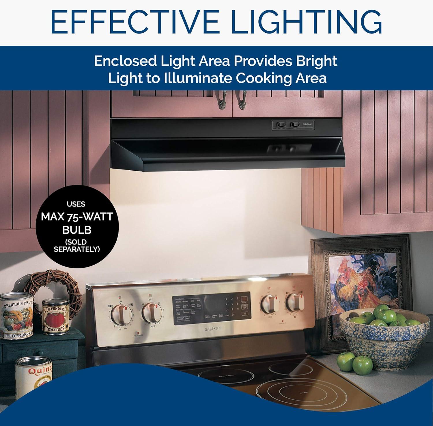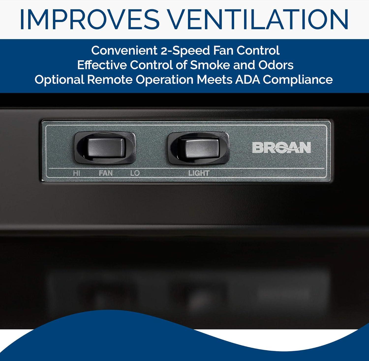 Broan-NuTone BUEZ030WW Economy 30-inch Under-Cabinet Easy Install Convertible Range Hood with 2-Speed Exhaust Fan and Light, White(Black)