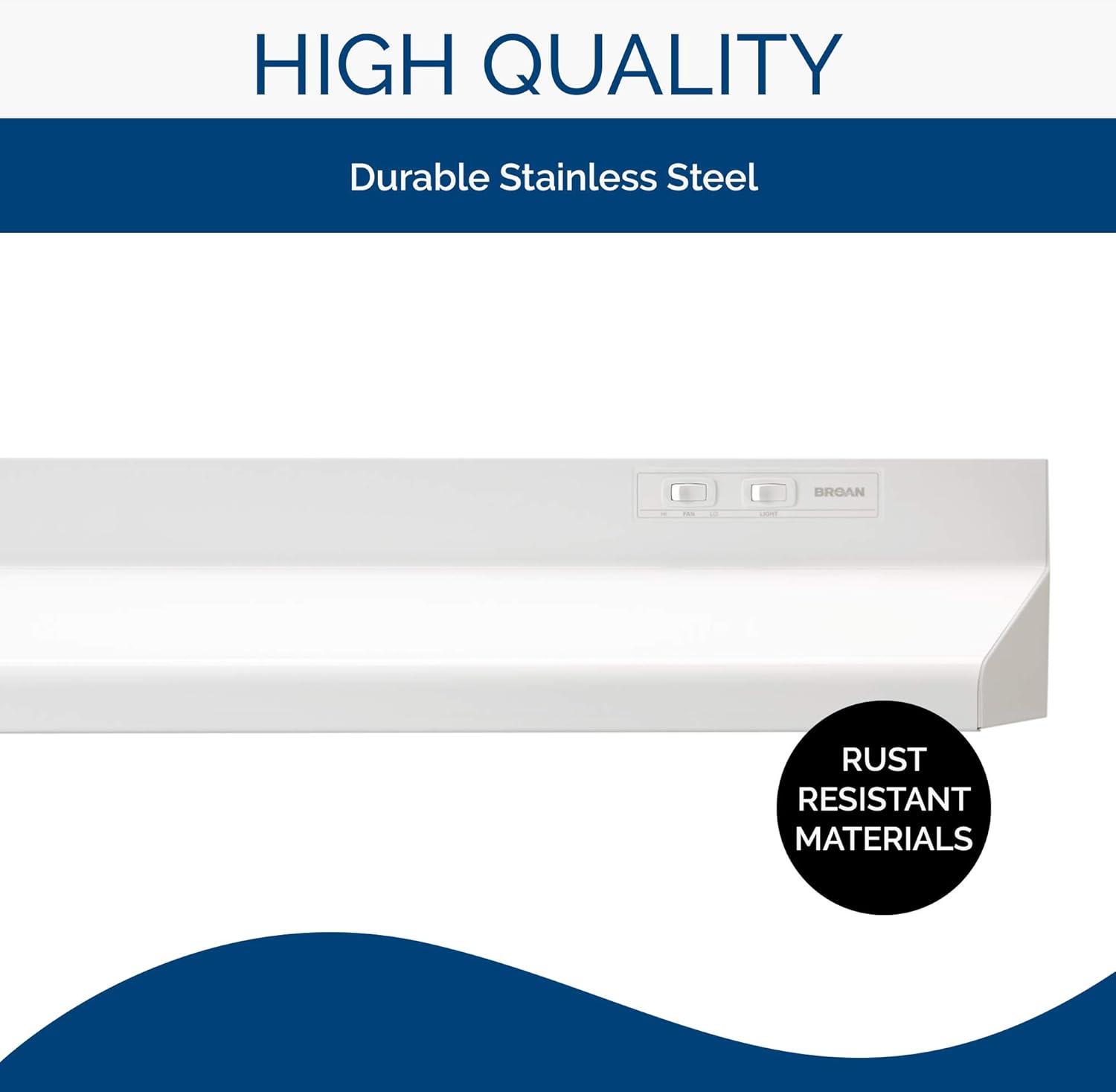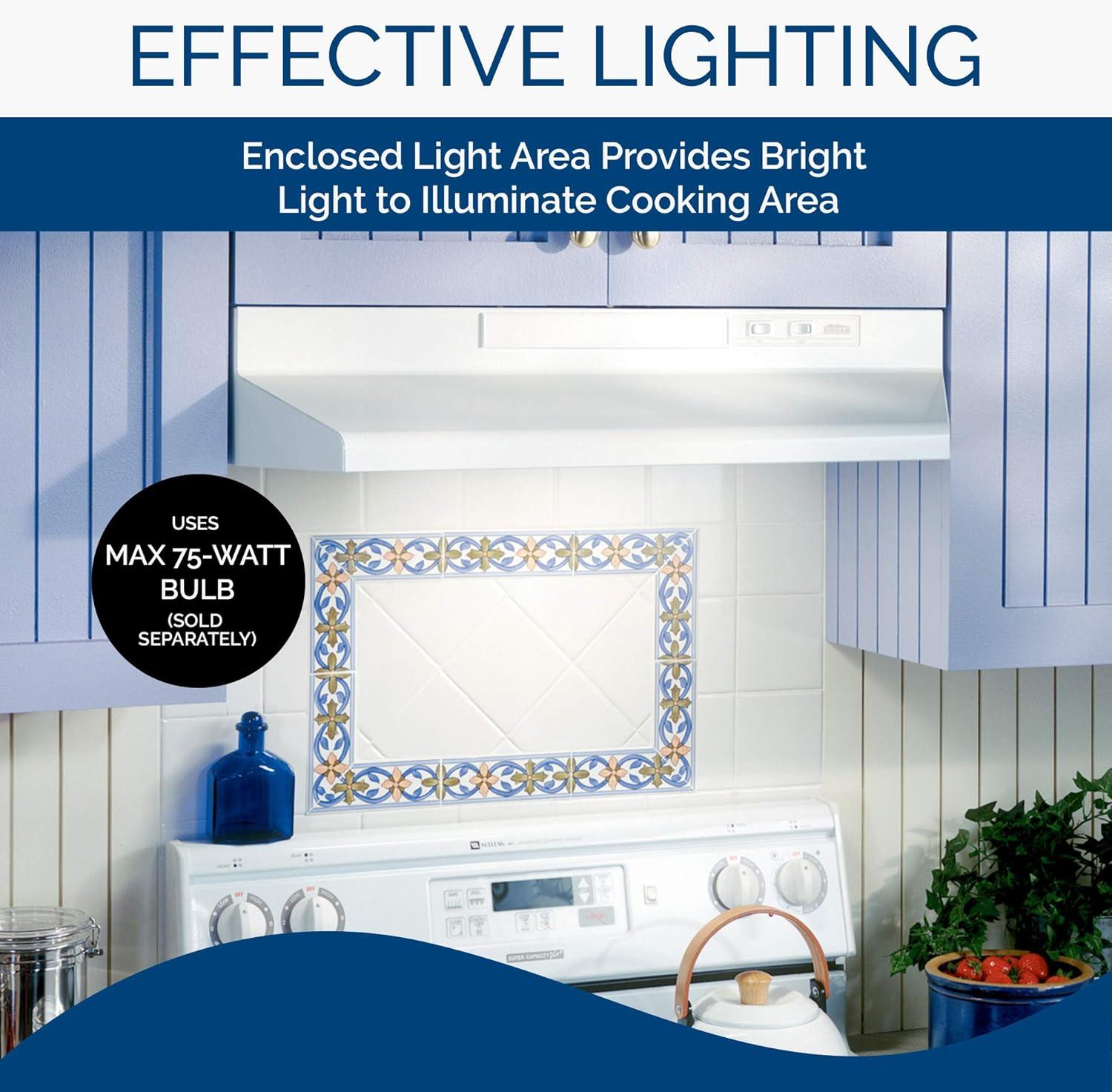Broan-NuTone BUEZ030WW Economy 30-inch Under-Cabinet Easy Install Convertible Range Hood with 2-Speed Exhaust Fan and Light, White(White)