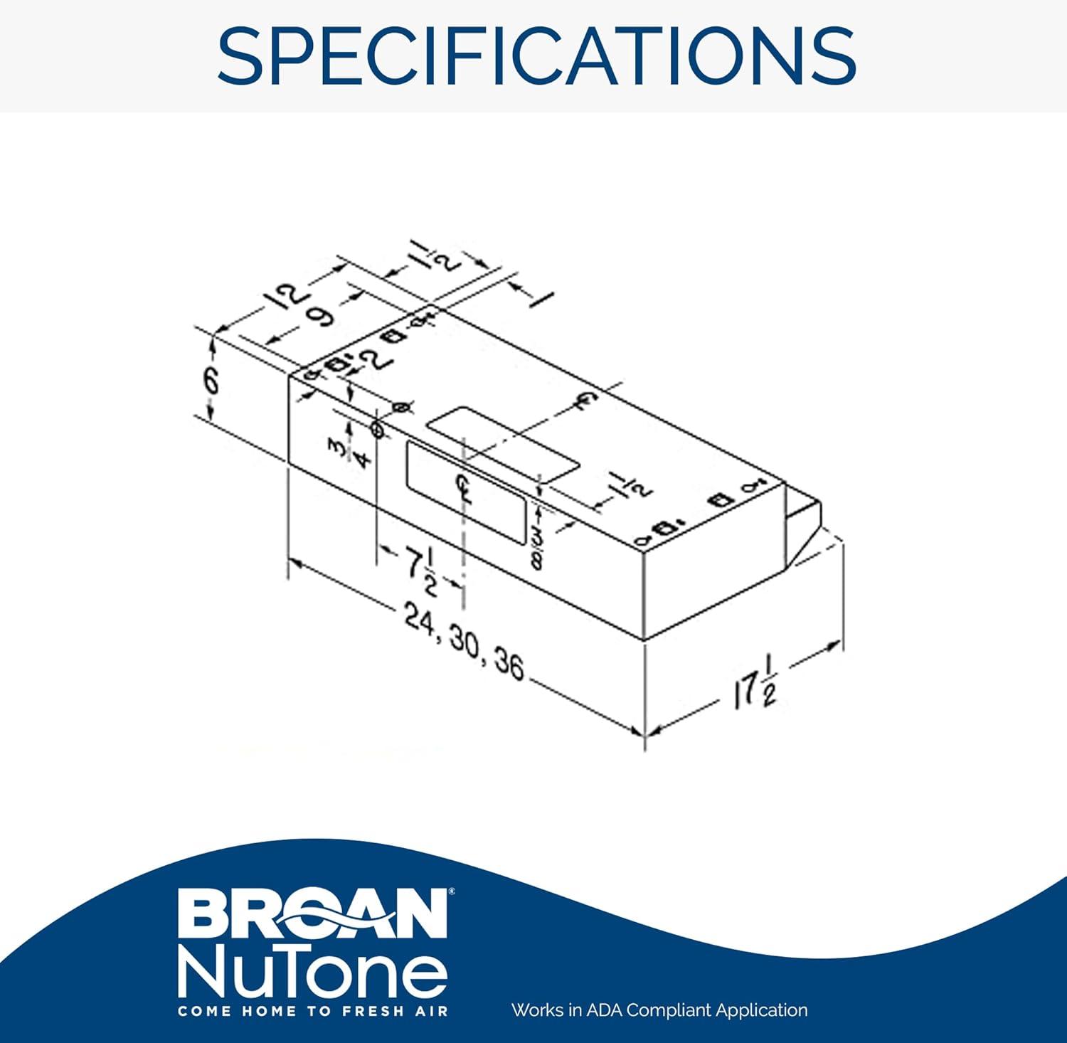 Upgrade your kitchen with the Broan-NuTone Economy 30-inch Under-Cabinet Easy Install Ducted Range Hood! This versatile range hood insert offers a complete solution to your ventilation needs by providing both an exhaust fan and overhead light for your stove. This range hood provides a MAX 210 CFM and 6.5 Sones blower performance to quickly remove smoke and cooking odors from the air, and the 2-speed rocker switch allows for quick fan adjustments and provides the ideal level of ventilation every time you cook. The built-in light with protective lamp lens accepts up to a 75-watt incandescent bulb (not included) to evenly illuminate your cooking area, and it is also controlled by a rocker switch for ease of use. This sleek black-colored steel range hood fits neatly underneath cabinets, and it features mitered sides and a hemmed bottom with no sharp edges to help ensure safety and provide a more decorative look. The one-piece dishwasher-safe aluminum grease filter offers easy cleaning so you can maintain optimum grease capture and keep your kitchen ventilated. This ducted range hood unit measures 17.5″ x 30″ x 6″ and installs as 3.25″ x 10″ ducted opening connected vertically or horizontally with damper, 7″ round vertical ducting (damper sold separately) to provide versatile installation options. The EZ1 one-person installation offers a two-bracket system that holds the hood for you while you make final electrical and ducting preparations. It can work in an ADA-compliant application as well. It is both UL-Listed and HVI-2100 Certified for safety and protection, and it includes a 1 year limited warranty. Enhance your kitchen with the Broan-NuTone BUEZ030BL Range Hood!