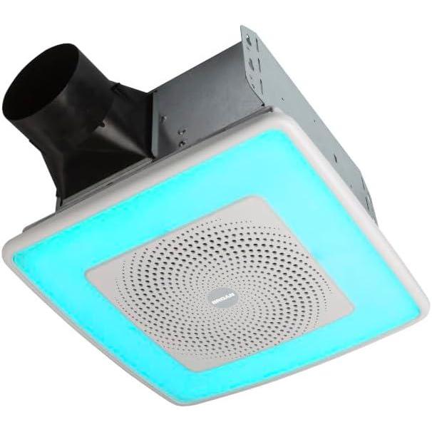 ULTRA-QUIET POWER BATH FAN WITH BLUETOOTH SPEAKER: Allows you to personalize the ambience in your bathroom with a 24-color LED light for endless options and Sensonic Bluetooth speaker with crisp and bold sound.Rated Amps : 0.4, Voltage : 120 volts.