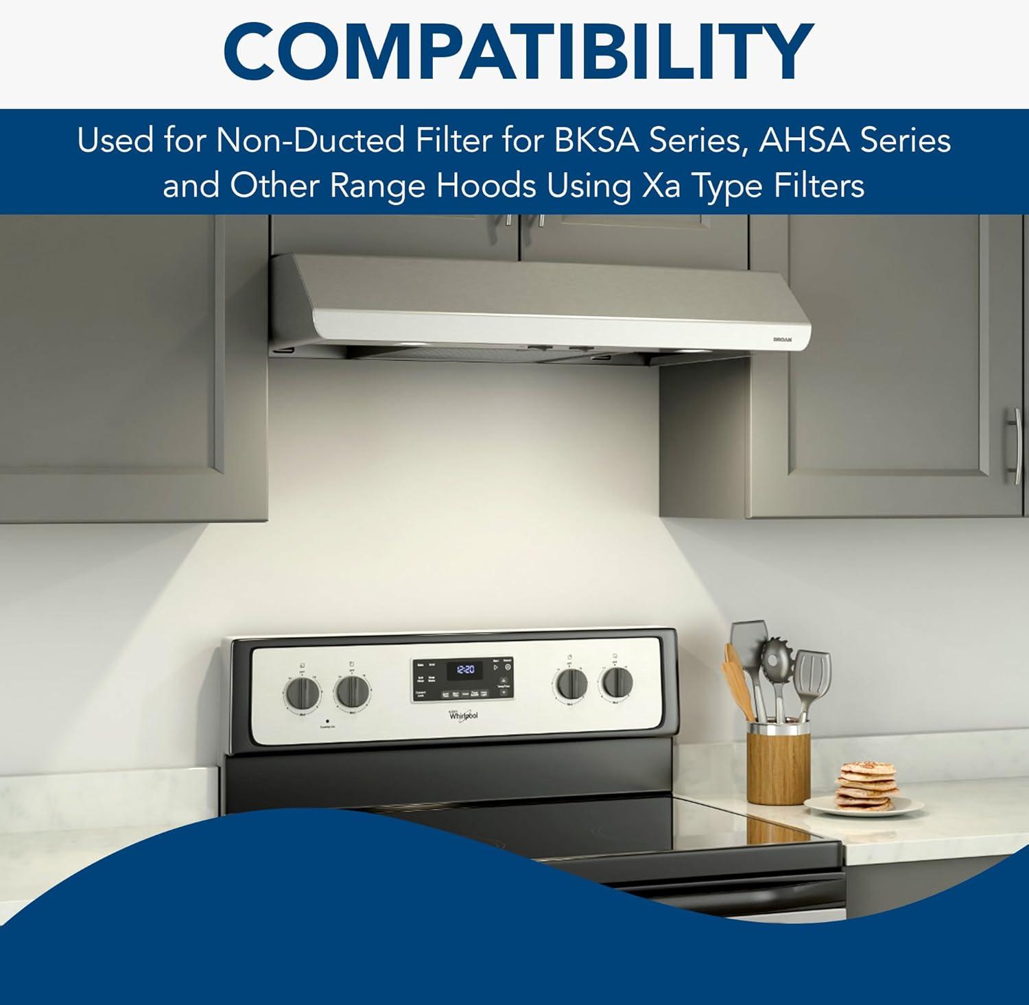 GENUINE BROAN-NUTONE FILTER: This replacement range hood charcoal filter is designed for use in non-duct installations such as the BKSA Series, AHSA Series, & other range hoods using XA Type filters