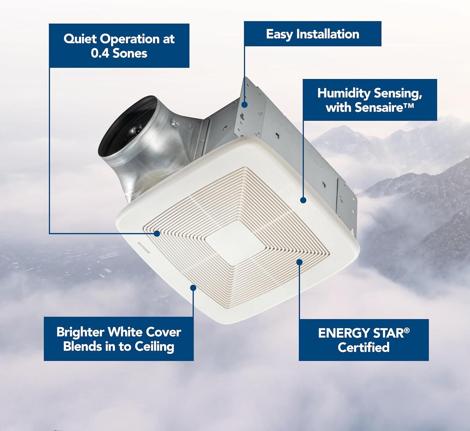 Broan-NuTone QT Series Very Quiet 110 CFM Ceiling Bathroom Exhaust Fan with Humidity Sensing, .4 Sones, ENERGY STAR Certified(NEW Ultra Quiet with Humidity Sensing)